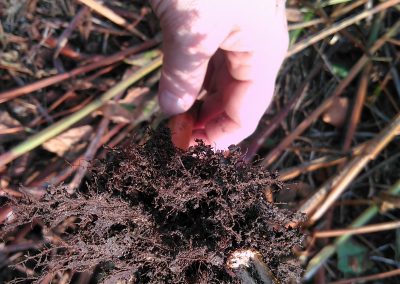 Natürliche Düngung des Bodens durch Verbleib des zerkleinerten Pflanzenmaterials.
