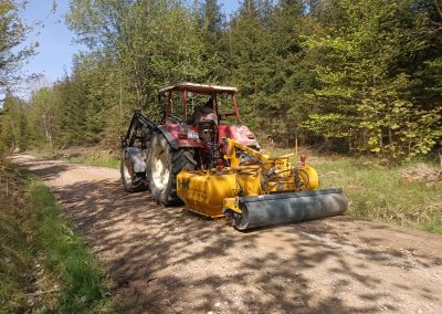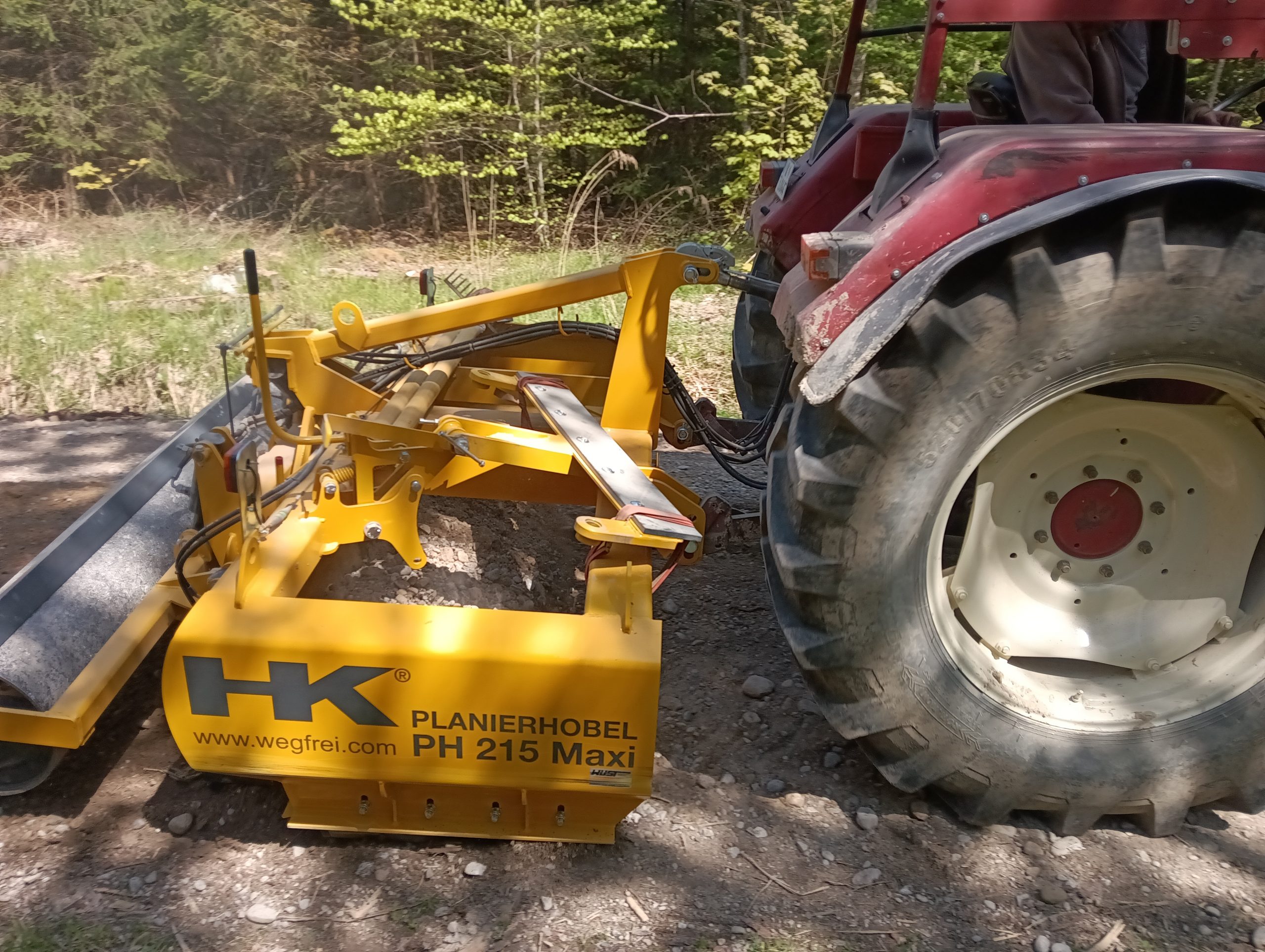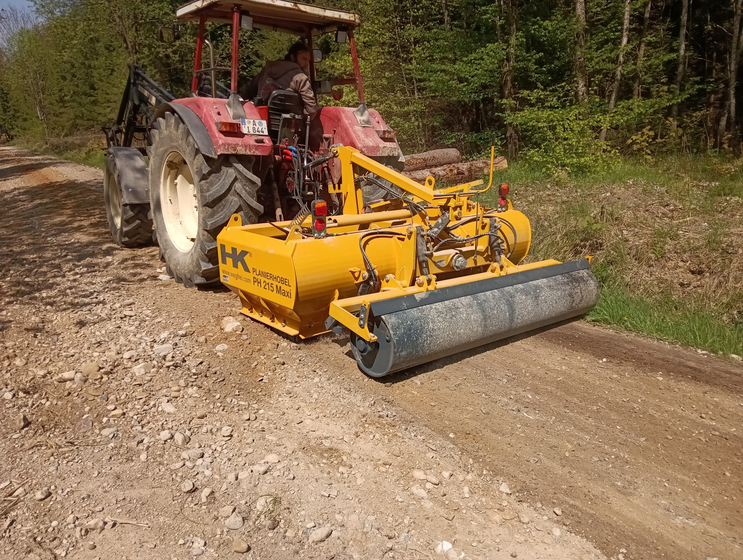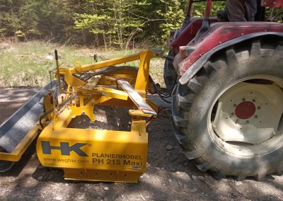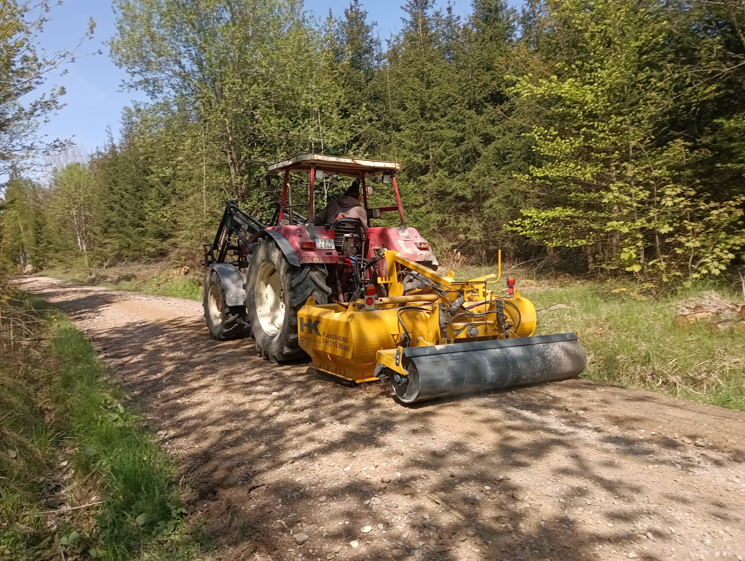 Wir bieten mit unserem HK-Planierhobel eine schnelle und effektive Wegepflegemethode an. Meist ist noch genügend Material vorhanden, aber an der falschen Stelle. Im Bunker kann das Material was z.B. an Steigungen herabgefahren wurde, wieder mit nach oben gebracht werden.